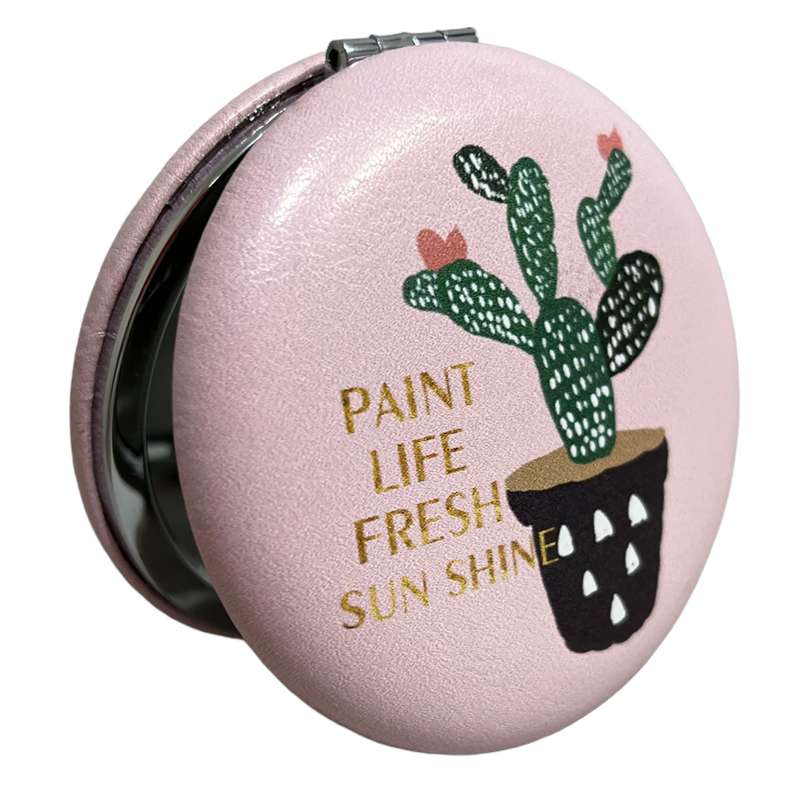 آینه جیبی مدل گرد طرح گلدان کاکتوس 3