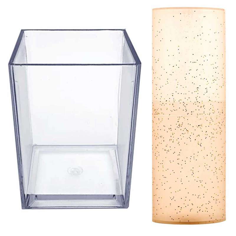 استند براش آرایشی مجموعه 2 عددی شامل یک عدد استند براش اکریلیک مناسب روی میز و یک عدد استند درب دار نشکن که مناسب داخل کیف و یا روی میز می باشد.ابعاد این استند 5×6.5×17 می باشد.