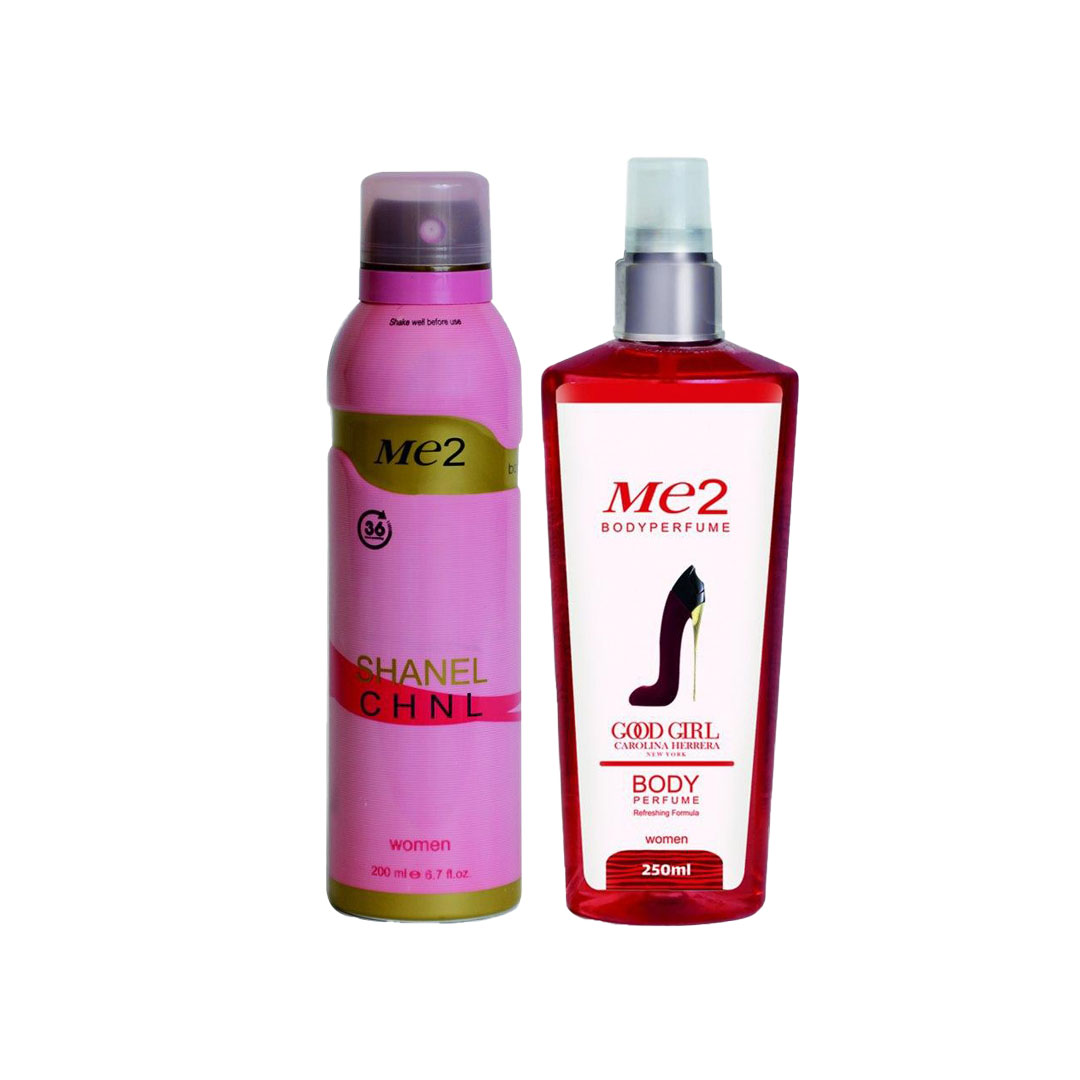 اسپری بدن زنانه می تو مدل چنل چنس حجم 200 میلی لیتر به همراه بادی اسپلش زنانه می تو مدل گودگل حجم 250 میلی لیتر