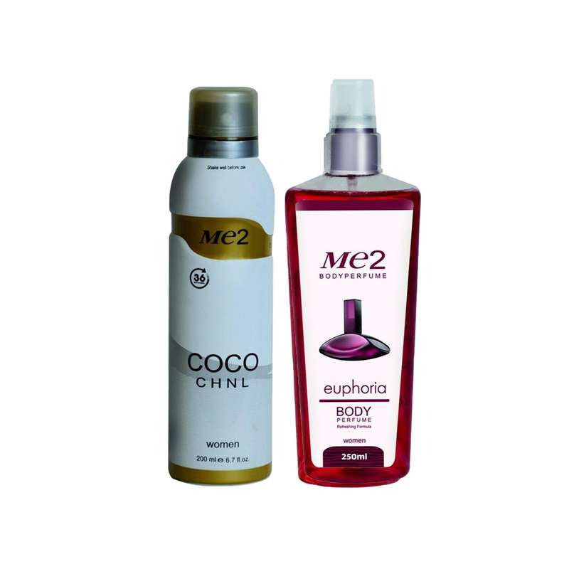 اسپری بدن زنانه می تو مدل کوکو حجم 200 میلی لیتر به همراه بادی اسپلش زنانه می تو مدل ایفوریا حجم 250 میلی لیتر
