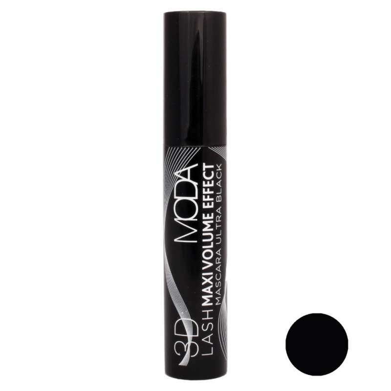 ریمل حجم دهنده و بلند کننده مدا Moda، مدل سه بعدی 3D، با رنگ مشکی فوق العاده تیره