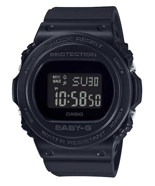 در سال ۱۹۹۴، کاسیو بیبی‌جی (BABY-G) با ایده تولید یک ساعت سخت و محکم زنانه به عنوان بخشی از مجموعه G-SHOCKمعرفی شد. بیبی‌جی از لحظه تولد با حمایت از فرهنگ جوانان، مد، موسیقی، هنر و ورزش، هویت منحصر‌به‌فرد خود را به بانوان پرجنب‌و‌جوش و فعال منتقل کرده است. این ساعت‌ها مقاوم در برابر ضربه ساخته شده‌اند و می‌توانند تا عمق ۱۰۰ متری در برابر فشار آب مقاومت کنند. همچنین دارای طرح‌های منحصر‌به‌فرد و تنوع رنگی جذاب هستند، که آنها را به گزینه‌ای ایده‌آل برای زنان فعال و پرجنب‌وجوش تبدیل می‌کند.