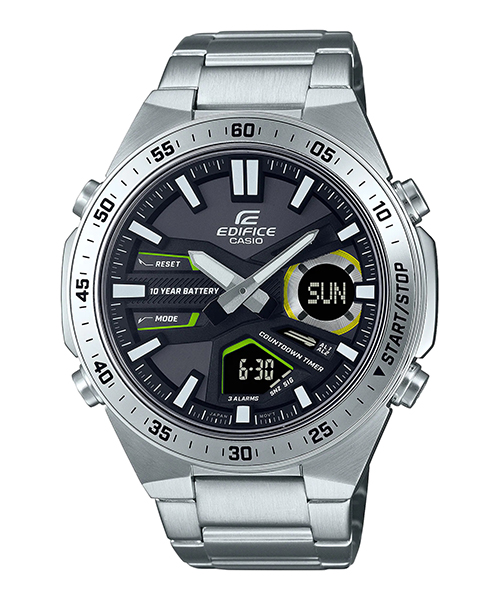 با این ساعت آنالوگ-دیجیتال EDIFICE با باتری 10 ساله، خودتان را رها کنید تا روی زندگی تمرکز کنید و نگران چیزی نباشید.