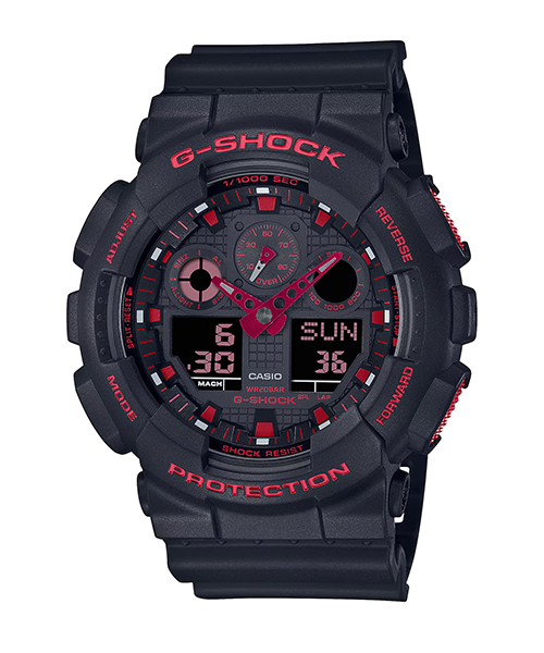 با انتخاب مدل GA-100 با صفحه سه بعدی پویا با خط قرمز Ignite در رنگ مشکی و قرمز آتشین نمادین که استحکام نهایی برند G-SHOCK را به تصویر می کشد، ظاهری جسورانه وقدرتمند داشته باشید .