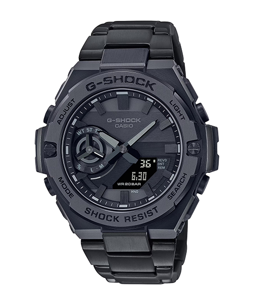 سری جدید GST-B500 یادآور سبک بدنه مدل های قبلی G-STEEL با نمایه‌ای باریک‌تر و صفحه‌بندی مینیمالیستی تر است. ساختار دارای محافظ هسته کربنی این مدل در عین حفظ سطح بالای مقاومت در برابر ضربه آن را به باریک ترین مدل G-STEEL تا به امروز تبدیل کرده است. این مدل جدید کاسیو قطعات مینیاتوری بیشتر و مدول‌های باریک‌تر با تراکم بالا را گرد هم آورده بدون اینکه از کیفیت عملکردهای بلوتوث یا شارژ انرژی خورشیدی آن کاسته شود. قاب این ساعت با روکش‌های متعددی ساخته شده است تا بافت‌های فلزی استثنایی را از هر زاویه ارائه دهد تا یک نمایش واقعاً پیچیده با ظاهر خاص خود ارائه دهد.