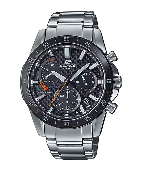 این ساعت ادیفایس یک کرونوگراف ابتکاری با انرژی خورشیدی و موتور اسپورت با صفحه فیبر کربنی است.