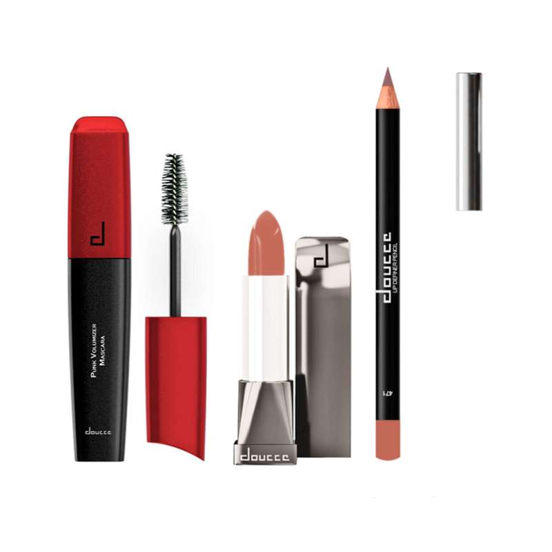 شامل یک ریمل دوسه مدل پانک و یک رژ جامد دوسه مدل مات شماره 923 و یک مدادلب شماره 471