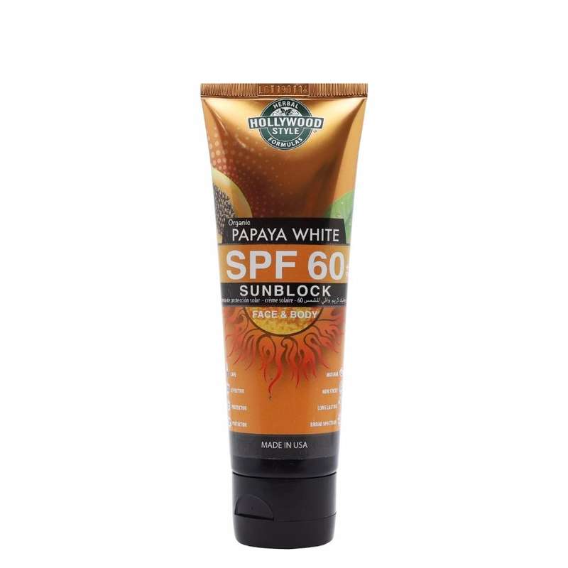 کرم ضد آفتاب بدون رنگ هالیوود استایل SPF 60 مدل پاپایا مناسب انواع پوست حجم 100 میلیلیتر