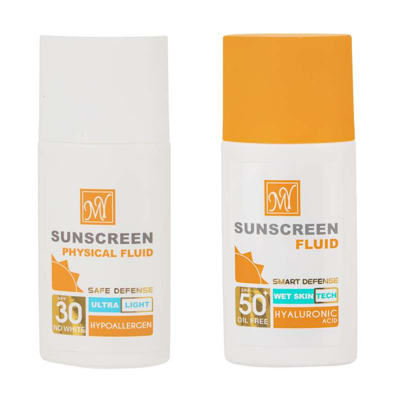 کرم ضد آفتاب بی رنگ مای SPF50 مدل Hyaluronic Acid مناسب پوست های چرب حجم 50 میلی لیتر به همراه فلوئید ضد آفتاب مای مدل Hypoallergen حجم 50 میلی لیتر