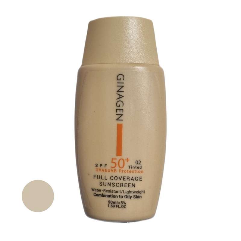 کرم ضد آفتاب رنگی ژیناژن SPF 50 مدل 02 مناسب پوستهای چرب حجم 50 میلیلیتر