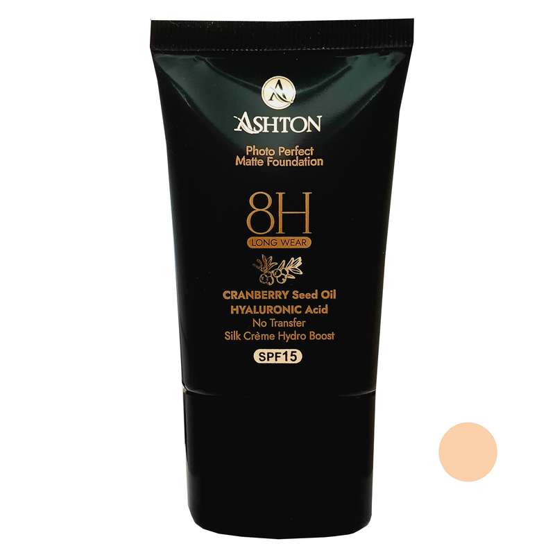 مات – حاوی روغن دانه کرنبری و ویتامین E -دارای قدرت پوشانندگی بالا – با ماندگاری 8ساعته – حاوی ضد آفتاب spf 15