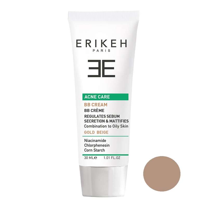 بی بی کرم ضد آکنه رنگی اریکه، مناسب پوست مختلط تا چرب است و ترشح سبوم را کنترل میکند. بی بی کرم ضدآکنه رنگی ERIKEH از برق زدن پوست جلوگیری نموده و با مبارزه با باکتریها، از بروز جوش و آکنه جلوگیری میکند. بی بی کرم ضد آکنه رنگ بژ طلایی ERIKEH، مناسب پوست مختلط تا چرب است. BB کرم اریکه منافذ باز پوست را جمع کرده و نواقص صورت را میپوشاند. بی بی کرم ضد آکنه رنگ Gold Beige اریکه حاوی نیاسینامید بوده و باکتریهای مولد جوش و آکنه را از بین میبرد. نیاسینامید یا همان ویتامین B3 م …